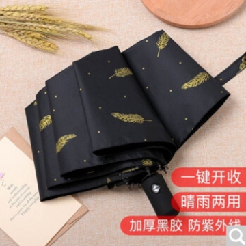 全自动雨伞三折大号防紫外线太阳伞男士商务轻便晴雨两用伞自动折叠雨伞 黑色羽毛款8骨